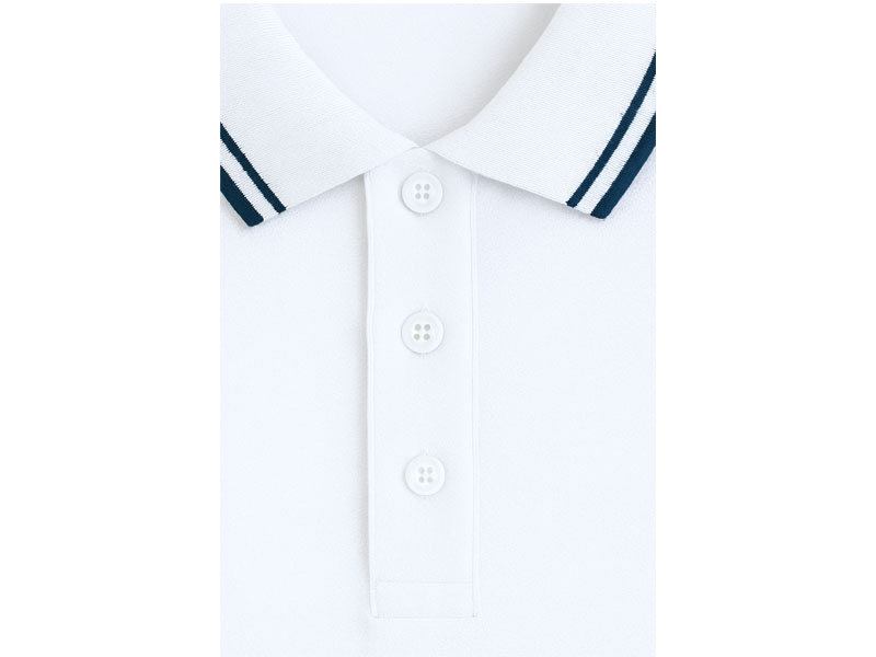 • Sleeves: Short sleeves with ribbed cuffs and contrast stripes